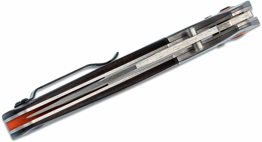 - Orange G10 backspacer and orange anodized aluminum pivot ring are durable