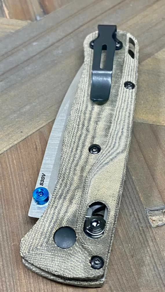 - Custom Scales: Carbon Fiber, Titanium, G10 Jade, Green/Black Micarta