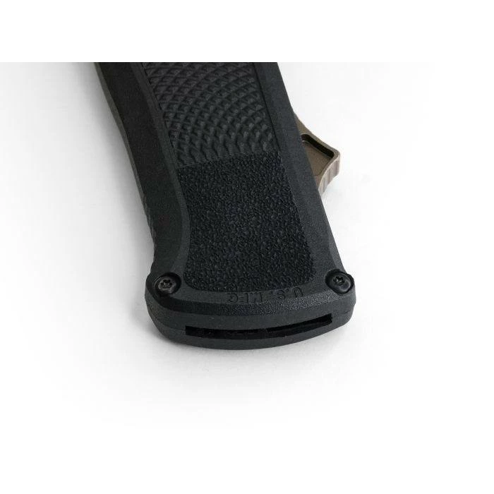 In a world where most out-the-front automatics are expensive and heavy, there is a demand for a lightweight and affordable OTF auto. Enter the 5370FE Shootoutโข. This Black Class knife was designed with law enforcement and tactical personnel in mind. It is the perfect weak-hand backup for anyone concerned with gross-motor deployment under stress. The 5370FEโข Shootout handles are CF-Eliteยฎ, a carbon-fiber filled Nylon that increases rigidity and allows for reliable deployment. The molded CF-Eliteยฎ has detailed texture that could not be milled into aluminum, Flat Earth PVD coated CPM-CruWearยฎ blades, Carbide glass breaker and a reversible clip. Made in the USA and stocked full of features and premium materials, the 5370FE Shootoutโข packs a punch.