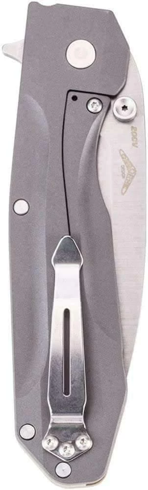 From designer Warren Osborne, the Proxy combines G10 and solid titanium in a monolock that brings a highly modern look and feel to the Benchmade lineup. This beautiful knife is a flipper knife by pressing the backside and it rolls smoothly out. Made in USA.