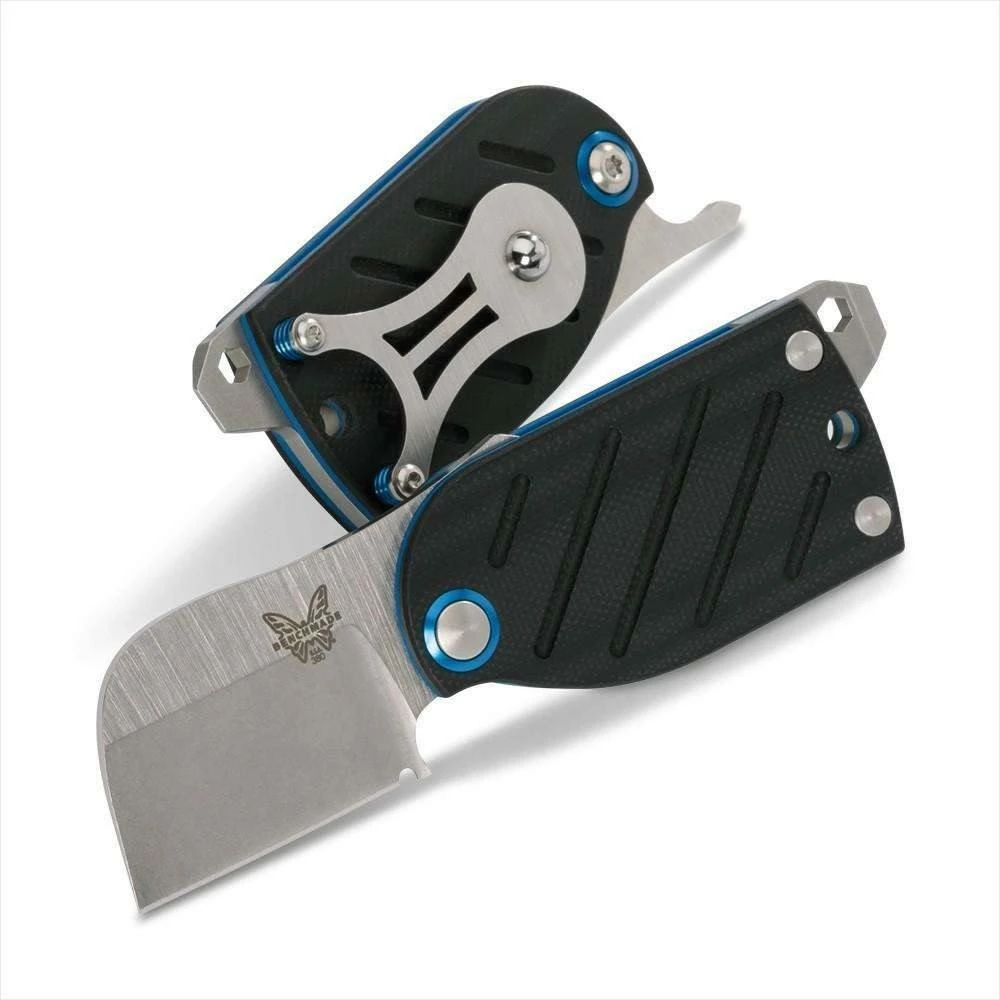 Benchmade Aller knifeย from Benchmade is the newestย and most functional knife on the market! It has a black G-10 handle with a blue base layer and a satin finished CPM-S30V blade.
