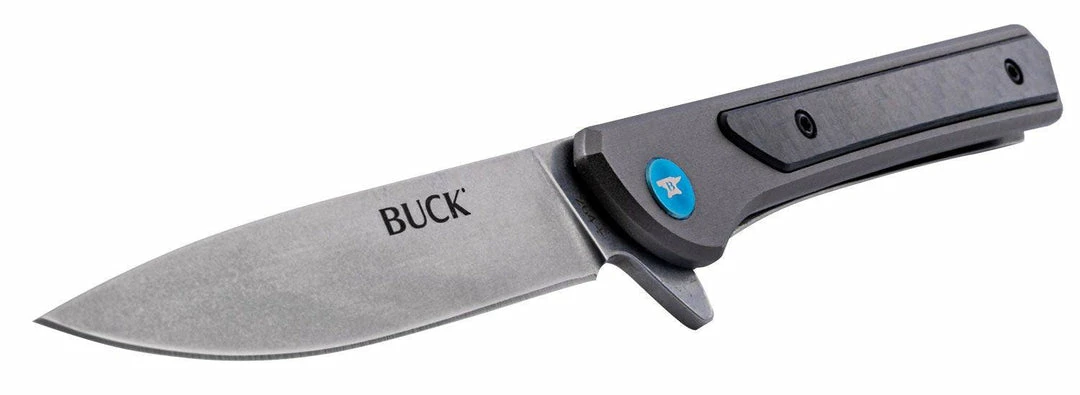 Buck 264 Cavalier Ball Bearing Flipper Knife 3.6″ Stonewashed Drop Point Blade, Anodized Aluminum Handles with Carbon Fiber Inlay – 0264GYS