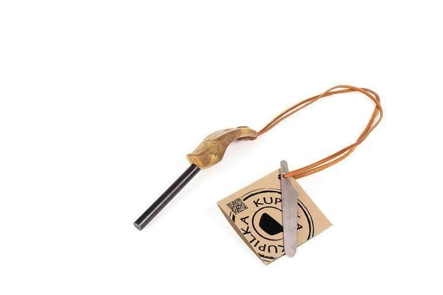 The premium Kupilka FireSteel 8 creates up to 3000ยฐC sparks for easy fire or stove lighting in all kinds of weather. Featuring a European sourced ferrocerium rod for highest quality and hottest sparks, the included compact striker and ethically produced reindeer leather cord make carrying and use a cinch, and the long rod handle can be used even with mitts on. An essential piece of fire-making kit.