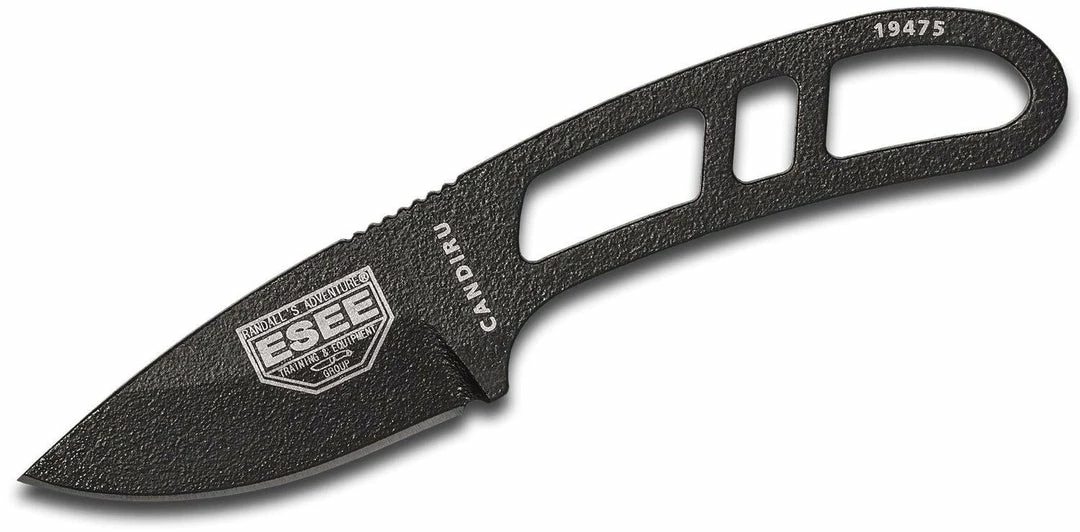 The Candiru is the most compact knife that ESEE offers yet it is still a ferocious cutter. It, like the Izula, is designed for neck carry or to be a secondary backup knife should the need arise. These knives are made from high carbon 1095 steel. And while 1095 is a top choice for professional cutlery designed for hard use, it will rust and stain if not properly cared for – especially on the cutting edge and around the laser engraving. It is the user’s responsibility to keep the blades properly lubricated and cleaned.