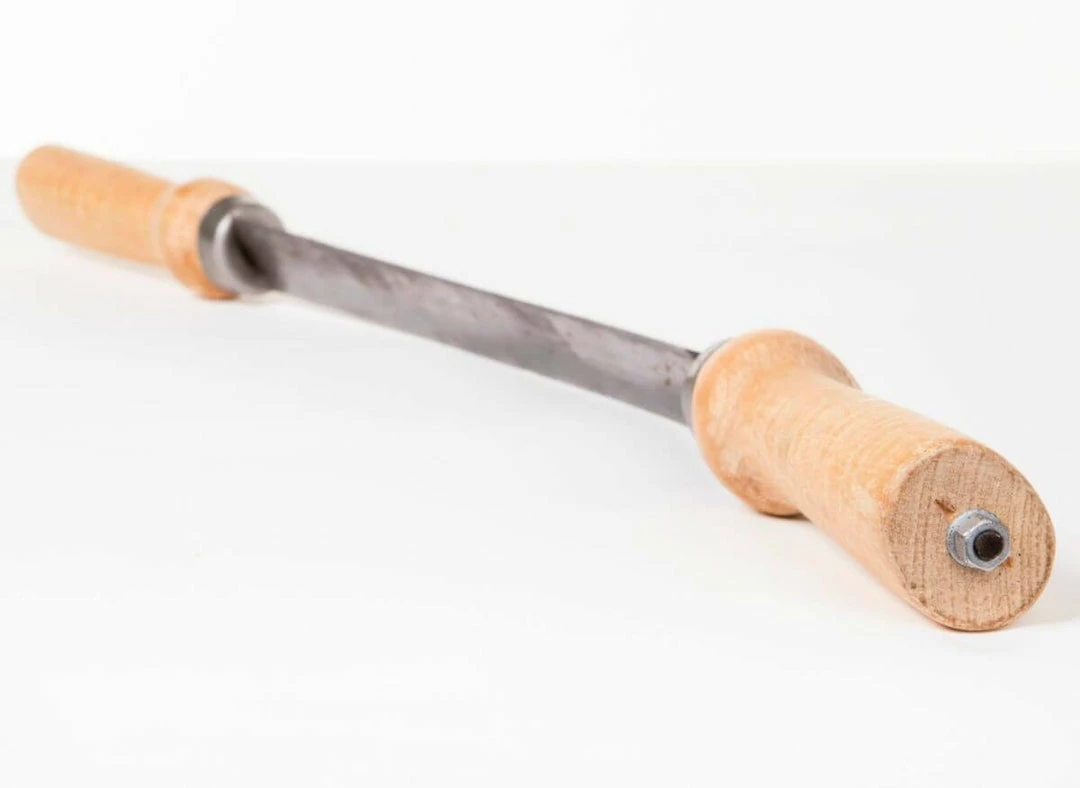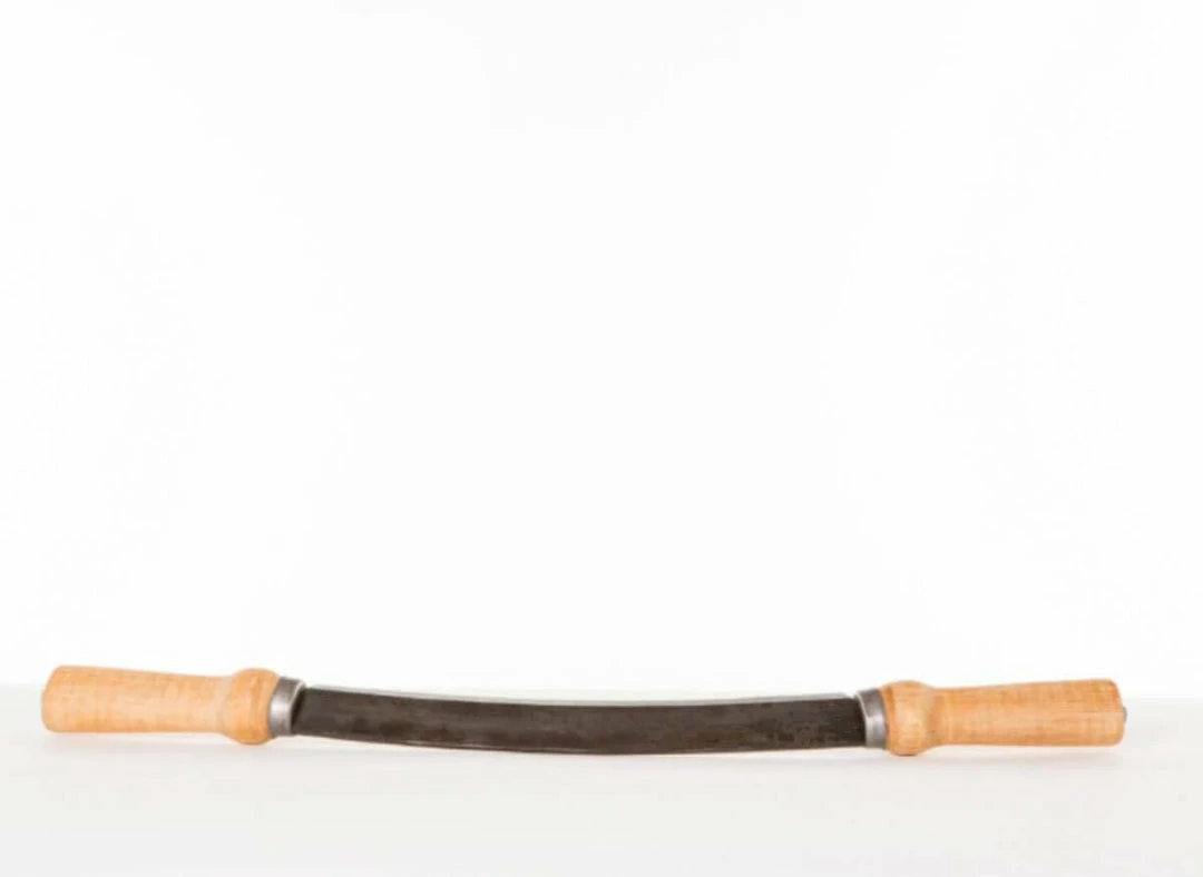 The Gränsfors Swedish Draw Knife is forged into an arch and is meant to be used with both hands for optimum effectiveness. The Draw Knife is mainly for debarking and shaping logs, and perhaps also dowels. The protruding handles allow the user to get plenty of power behind each stroke. It is important to put your whole body into the action, rather than just using your arms. The knife glides over the timber, with the angle adjusted by hand for the desired planing effect. The Draw Knife can also be angled more sharply for more of a cutting action.Model 485