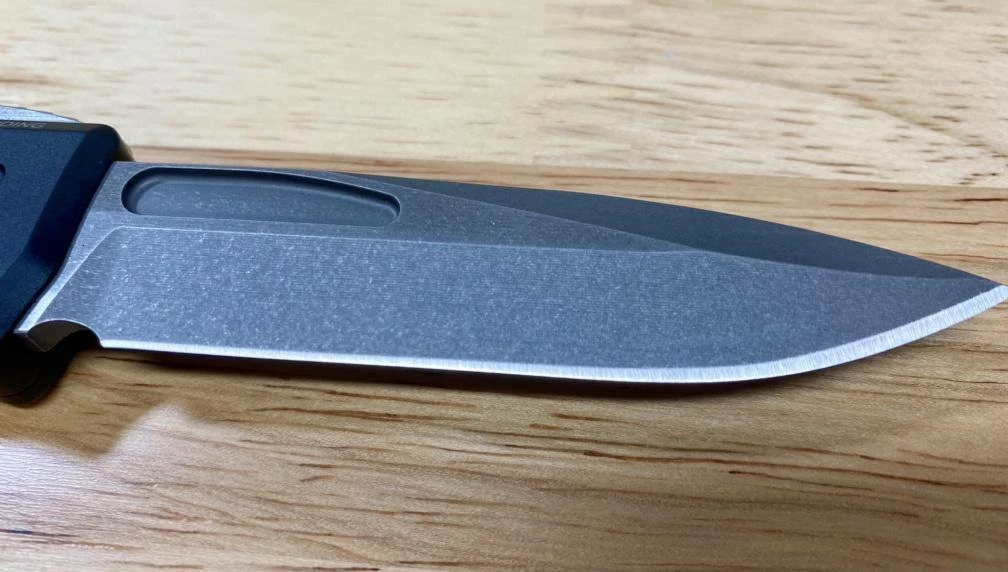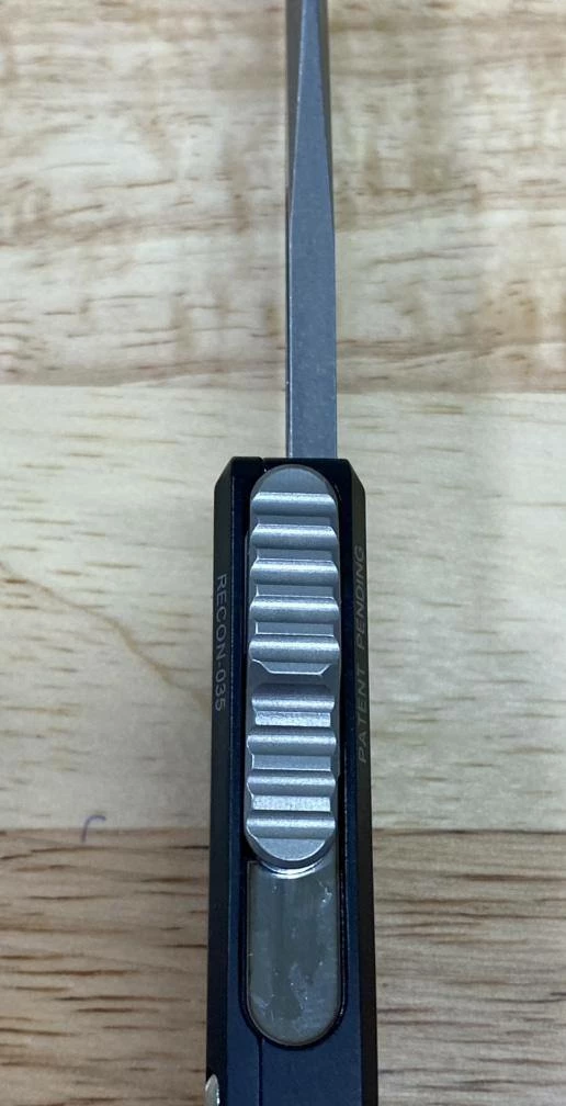 The Guardian Tactical Recon-035 sets the industry standard for OTG Automatics a lot higher.ย With its patented OTF mechanism, opening and closing this blade is significantly smoother and very strong.ย Their new locking mechanism doesn’t touch the blade in motion thereby reducing friction and wear.ย The thumb slide utilizes a steel plate and ceramic balls to eliminate typical OTF wear on the aluminum handle.