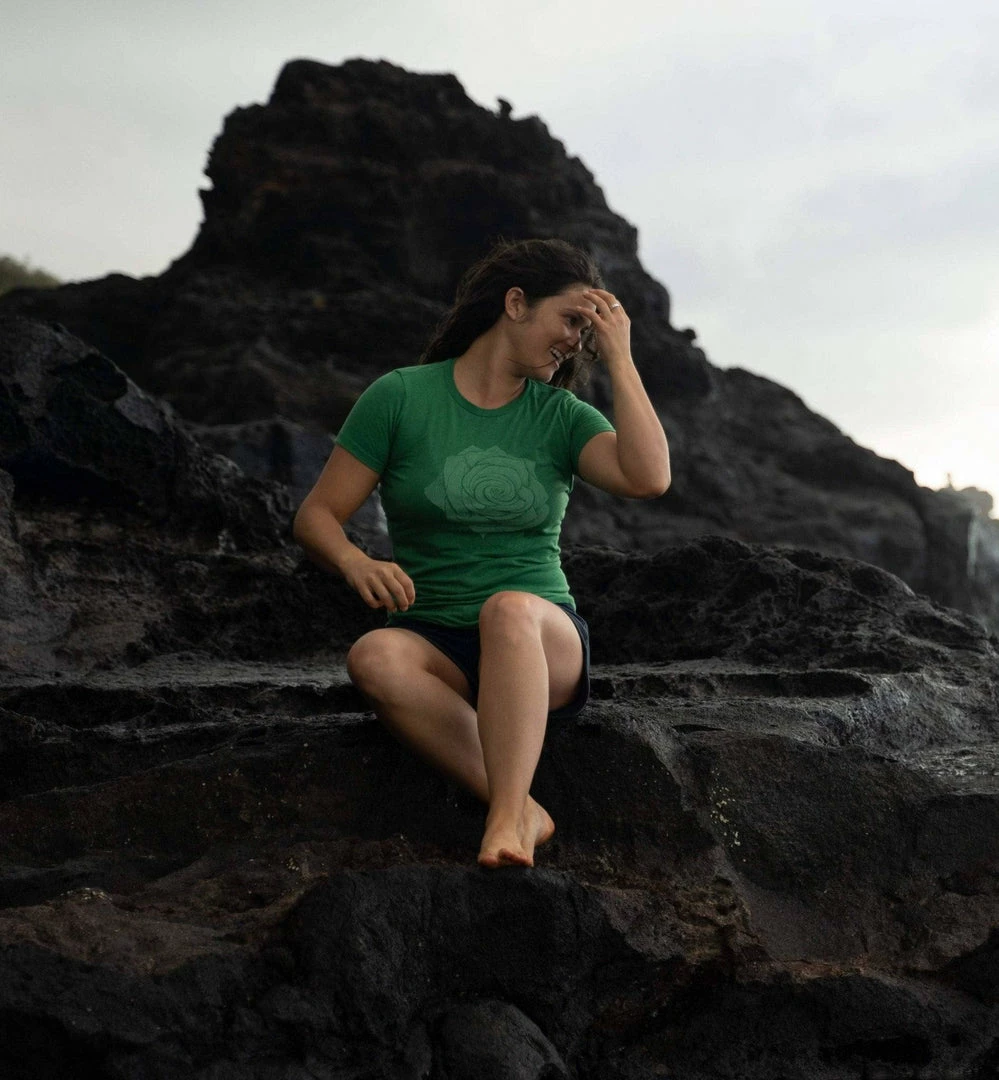 50% polyester, 25% Airlume combed and ring-spun cotton, 25% rayon. These exceptional quality tees are pre-shrunk and have a soft-hand feel.