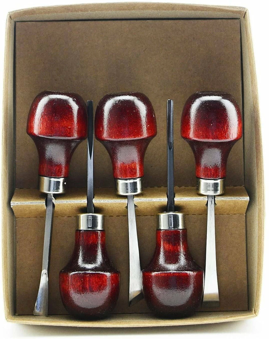 - This wood carving set includes: 5/16″ #8 Gouge, 9/64″ straight gouge, 9/64″ bent V, 3/8″ skew, 3/8″ bent chisel