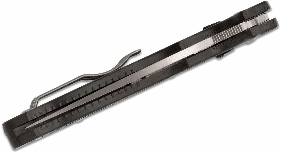 An ambidextrous, tip-up wire silhouette pocket clip and screw-together handle construction make the folder user friendly with several and carry options.