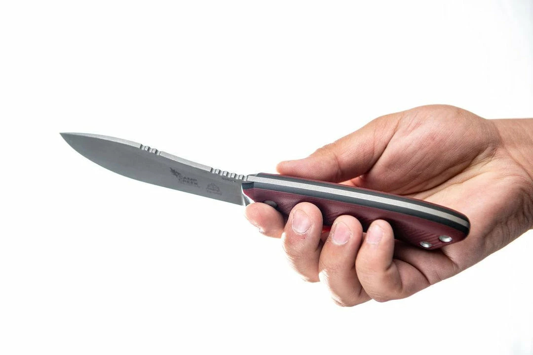 nspired by the historic Nessmuk knife, the TOPS Camp Creek was designed as a hybrid hunting and camp knife. Debuting CPM S35VN stainless steel it is a top-selling hunting knife and the Camp Creek Fire Edition is likely to be just as successful. A parallel evolution, the Fire Edition has a fuller handle and slightly larger blade with more belly and a less pointed tip. The Nessmuk DNA is still there making this knife ideal for skinning and general utility. This version comes with a tumbled CPM-S35VN blade with red and black G10 handle scales.