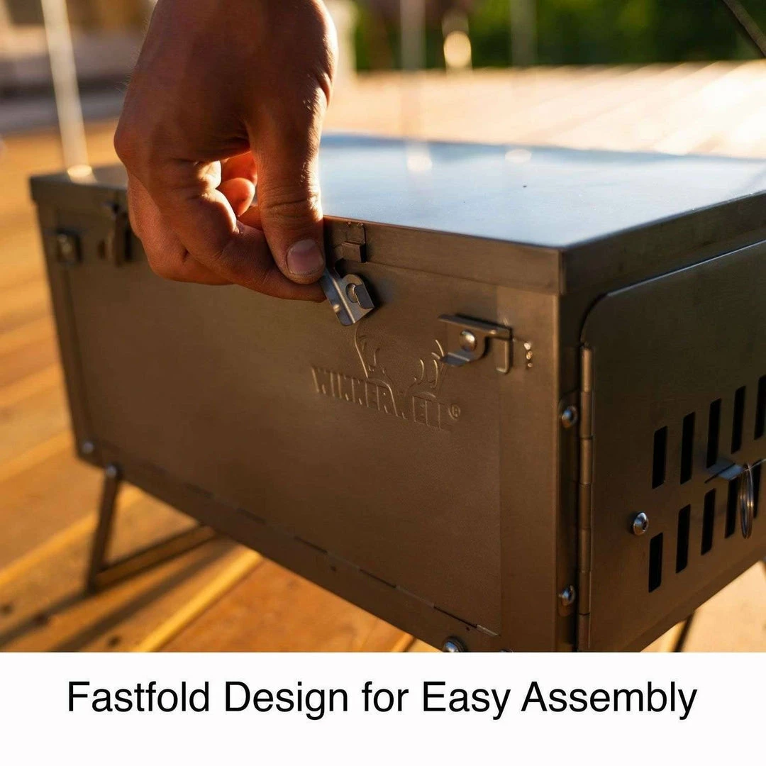 Materials: Made with ultralight titanium, the Winnerwell Fastfold Titanium Tent Stove is highly portable and incredibly lightweight at just 4 pounds. Titanium can withstand much higher temperatures than steel, allowing this stove to be made from very thin material that keeps weight and pack size to a minimum. The high heat transfer efficiency of Titanium allows these stoves to effectively heat small shelters in very cold conditions and hold hot coals for hours.
